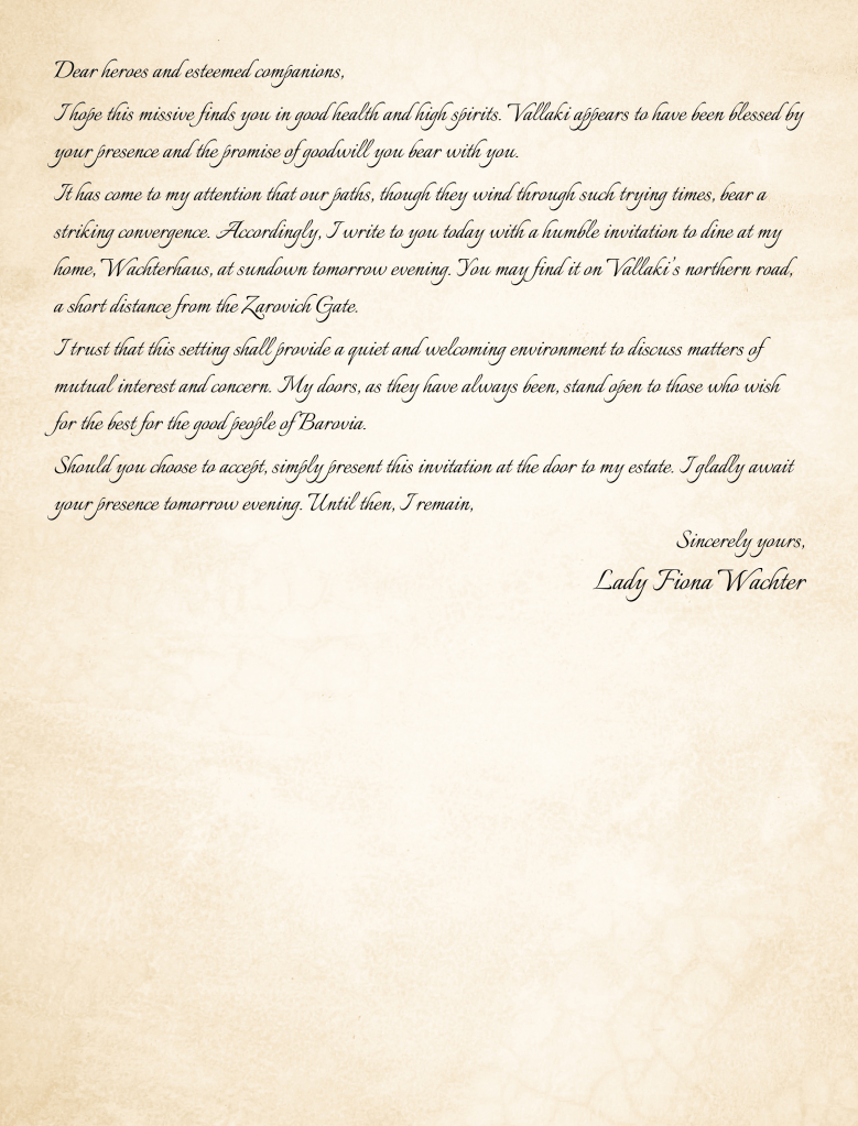 After returning to the Blue Water Inn a messanger relayed a note to the heroes.